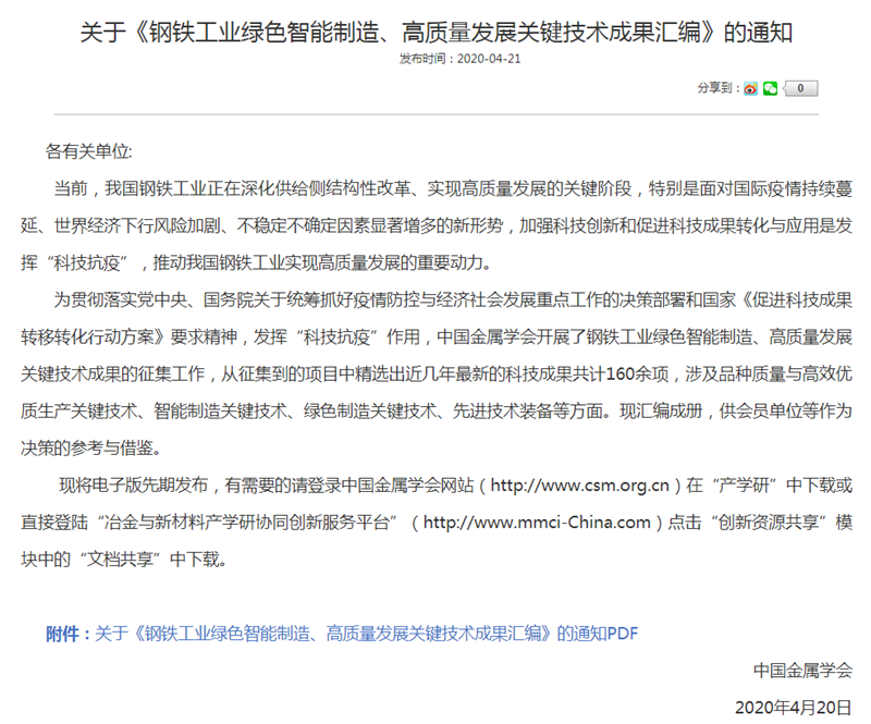 20191023日,中國金屬學(xué)會(huì)下發(fā)了《關(guān)于征集鋼鐵冶金行業(yè)關(guān)鍵共性技術(shù)的通知》(金字[2019]147號(hào)),開展2019-2020年度鋼鐵冶金行業(yè)關(guān)鍵共性技術(shù)的征集和發(fā)布工作。根據(jù)公司領(lǐng)導(dǎo)的部署,科技部訊速組織協(xié)調(diào)各專業(yè)部門準(zhǔn)備申報(bào)材料,最終申報(bào)了焦化、煉鐵、軋鋼等專業(yè)的5項(xiàng)技術(shù)。