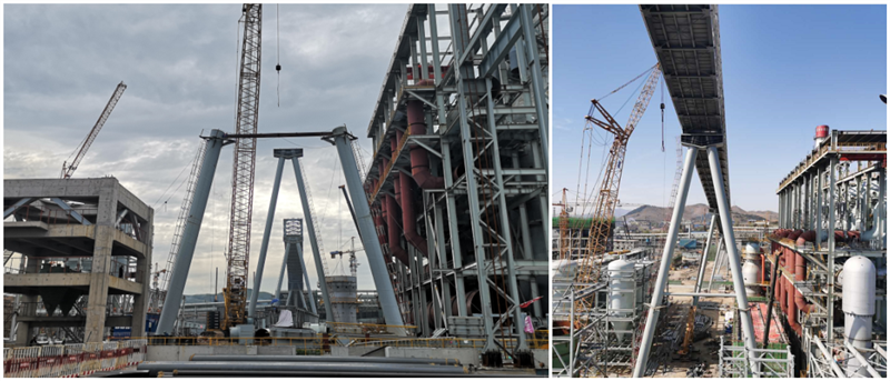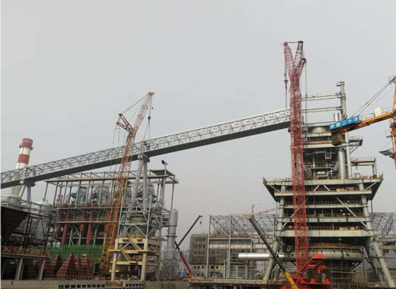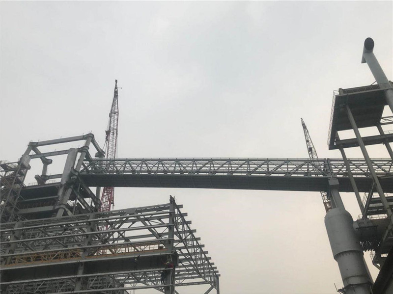 5#通廊在4000噸米塔吊和350噸履帶吊相互合力下,經(jīng)過近6個(gè)小時(shí)的吊裝,順利達(dá)到68.90米就位高度,按計(jì)劃節(jié)點(diǎn)提前7天完成高爐主皮帶通廊的整體鋼結(jié)構(gòu)安裝。這是萊鋼1#3800m3高爐本體工程中吊裝高度最高、單體重量最重、跨度最大的鋼結(jié)構(gòu)件,5號(hào)通廊成功安裝,為后續(xù)設(shè)備安裝、通廊封閉、設(shè)備單機(jī)調(diào)試等創(chuàng)造了有利條件,同時(shí)給其他各參建單位做了號(hào)的榜樣,便于帶動(dòng)其他工序積極作業(yè)施工。