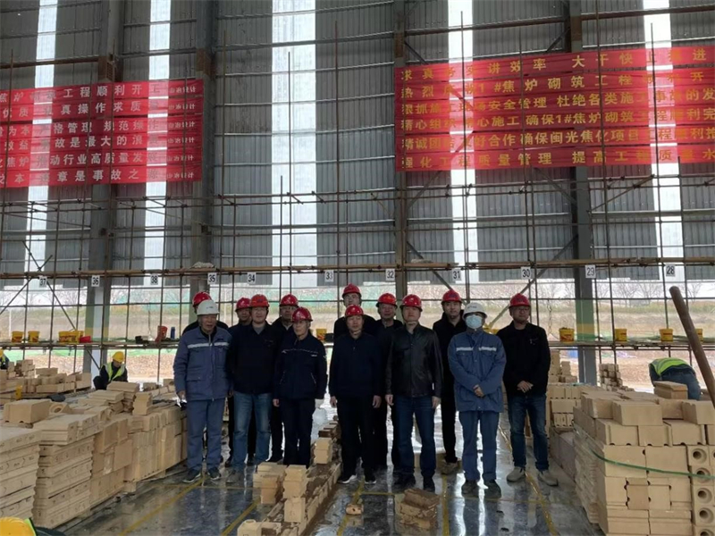 自2022年10月7日焦爐項目全面開工建設以來,總包項目部與各施工單位一起倒排工期、掛圖作戰(zhàn),做好安全、質(zhì)量的雙控制,克服疫情、冬季施工的不利影響,確保了兩座焦爐按期交付砌筑。兩座6.73米焦爐總的耐材用量5.7萬余噸,900余個磚型,耐材用量大、磚型種類多,砌筑工期緊,兩座焦爐間隔時間短,對耐材生產(chǎn)、供應、管理的要求非常高。公司領導對閩光項目組織高度重視,尤其是砌筑方面在項目中標后第一時間啟動了耐材的招標工作,從中標單位選擇、合同簽署、生產(chǎn)組織、質(zhì)量控制、供貨安排等環(huán)節(jié)提要求、定目標、追落實,為耐材按計劃供貨提供了堅實的保障;項目管理公司為保證耐材生產(chǎn)進度、質(zhì)量全過程受控,在公司監(jiān)制人員緊張的情況下,組織經(jīng)驗豐富的監(jiān)制工程師到各耐材生產(chǎn)廠家定期巡檢;對魯耐、魯橋、洛耐等重點企業(yè)進行駐場監(jiān)制,從而確保了耐材生產(chǎn)進度和供貨按計劃順利進行,自2022年12月開始發(fā)貨以來,月均耐材進場量都保持在1萬噸以上,保證了焦爐砌筑順利進行??偘椖坎吭趪揽亟範t主體施工質(zhì)量、節(jié)點的同時,從耐材進場、存儲、現(xiàn)場檢驗、出入庫管理等方面加強管理,砌筑管理人員與業(yè)主、監(jiān)理一起嚴格把控砌筑質(zhì)量,按規(guī)范和設計要求監(jiān)測灰縫、墻寬、洞寬、標高等幾何尺寸及灰漿飽滿度、墻面平整度等,高質(zhì)量保障砌筑順利、有序進行,全力打造高標準、嚴要求的品質(zhì)工程。