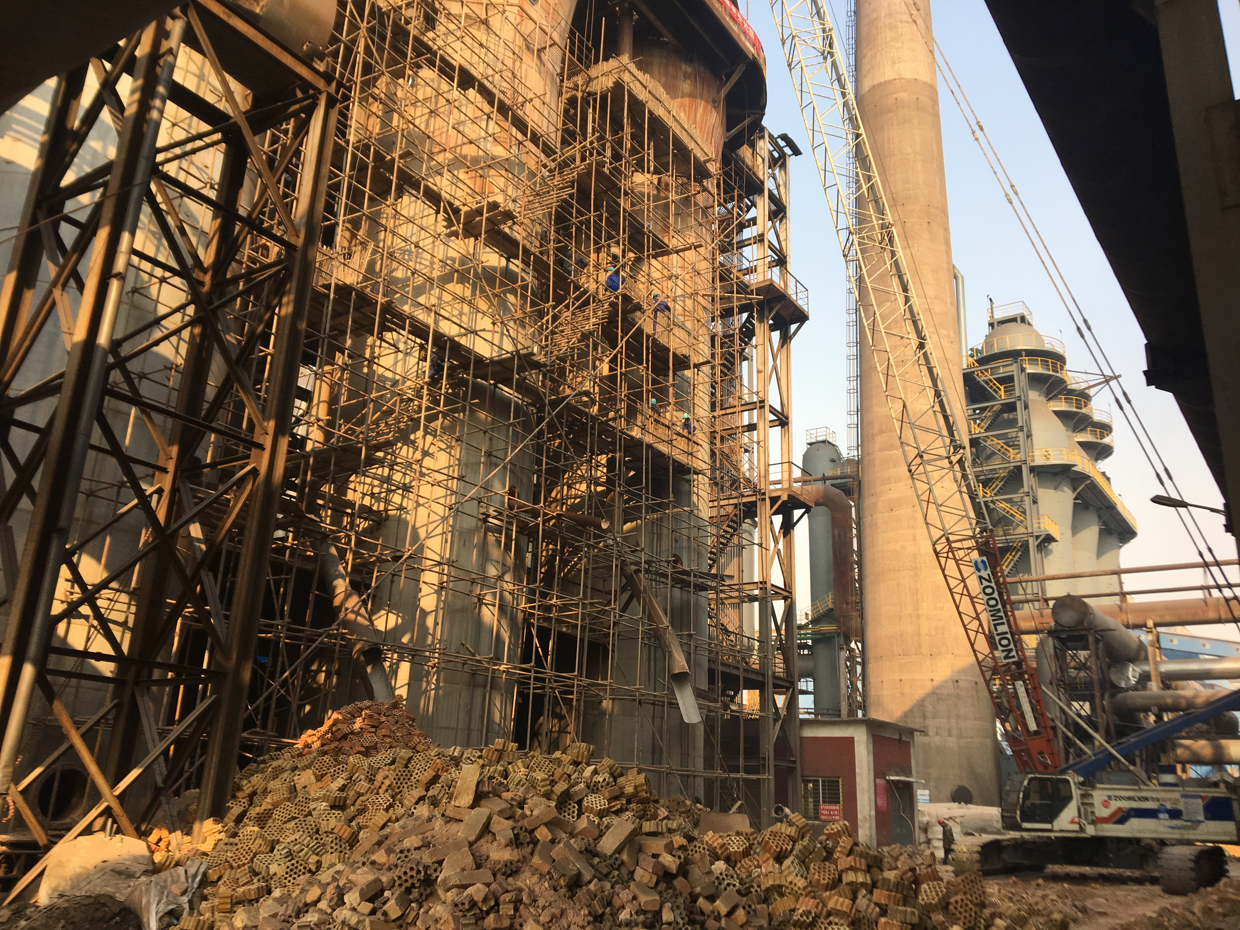 此項目自2019年1月11日停爐開始改造,先拆除,后新建,現(xiàn)場復(fù)雜,工期緊,工程量大。先后拆除耐材3000余噸,鋼結(jié)構(gòu)設(shè)備拆除500噸,新砌筑耐材3400噸,新建鋼結(jié)構(gòu)設(shè)備600噸,同時電氣改造,熱風爐自動化程序設(shè)計。針對春節(jié)工人回家過年、當?shù)丨h(huán)保施工管控嚴、耐材供應(yīng)不及時等不利影響,項目部積極克服,不斷優(yōu)化調(diào)整方案將影響降到最低,條件具備后,采取晝夜不停分層分班作業(yè)施工,安全順利完成了既定節(jié)點,得到了甲方業(yè)主的認可!