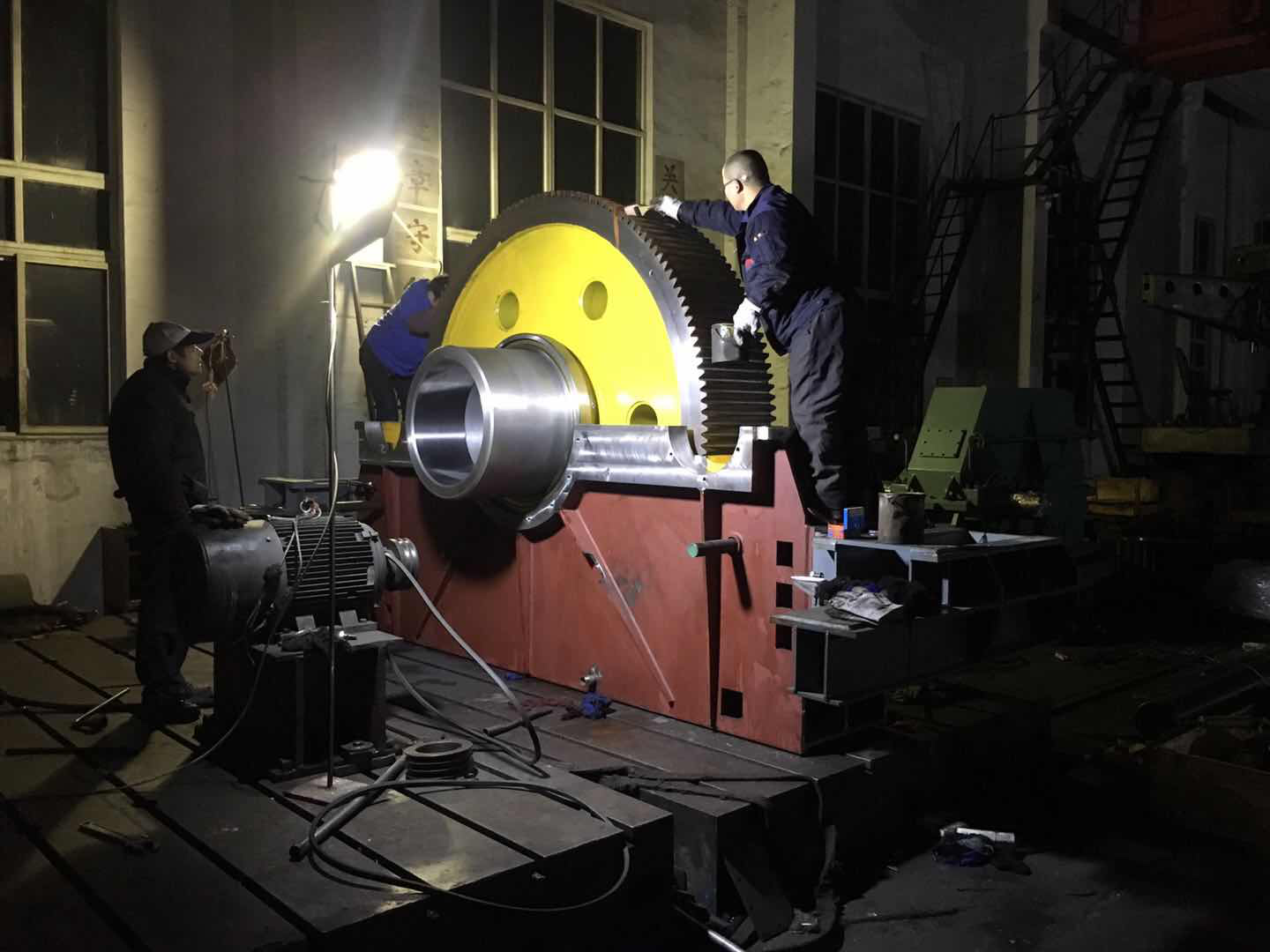 設(shè)備到場(chǎng)后,項(xiàng)目部根據(jù)之前制定的施工方案,連夜組織安裝隊(duì)伍卸車、安裝,安裝過(guò)程中,由于柔傳設(shè)備與燒結(jié)機(jī)頭輪設(shè)備為兩廠家制造,制造精度存在偏差,安裝前經(jīng)過(guò)反復(fù)測(cè)量還是發(fā)生了一次減速機(jī)在臨近完成穿軸工序時(shí)無(wú)法正常進(jìn)行的狀況,此時(shí)已是第二天凌晨4點(diǎn)。項(xiàng)目部現(xiàn)場(chǎng)人員當(dāng)即決定退出一次減速機(jī)進(jìn)行處理后重新穿軸,待設(shè)備處理好第二次穿軸完成時(shí)已是第二天上午9點(diǎn)16分。期間,山冶設(shè)計(jì)日照燒結(jié)項(xiàng)目部、監(jiān)理人員24小時(shí)連夜督戰(zhàn),一刻都沒(méi)有休息,二十冶施工人員更是一鼓作氣完成了扭力桿、傳動(dòng)電機(jī)、二次減速機(jī)的安裝,甚至吃飯都在現(xiàn)場(chǎng)臨時(shí)解決。電氣安裝人員與調(diào)試人員隨時(shí)待命,在設(shè)備安裝的同時(shí)穿插完成了電機(jī)的接線與調(diào)試工作。到下午6點(diǎn)18分,連續(xù)奮戰(zhàn)28小時(shí)后完成了整個(gè)柔傳設(shè)備的安裝調(diào)試工作,提前完成了預(yù)先制定的春節(jié)前施工任務(wù)。而在精品基地一期一步時(shí),此安裝任務(wù)用了整整七天!這次僅用了28小時(shí)!