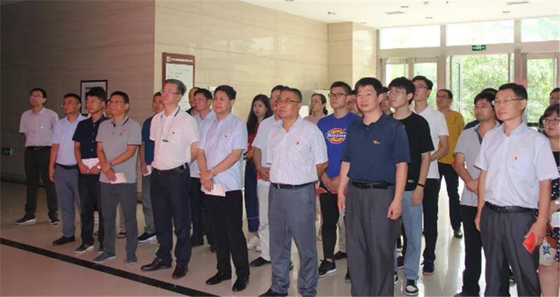 在鮮紅的黨旗前,黨委書記谷卓奇、黨委副書記劉洪亮、副總經(jīng)理李銳帶領大家重溫了入黨誓詞。