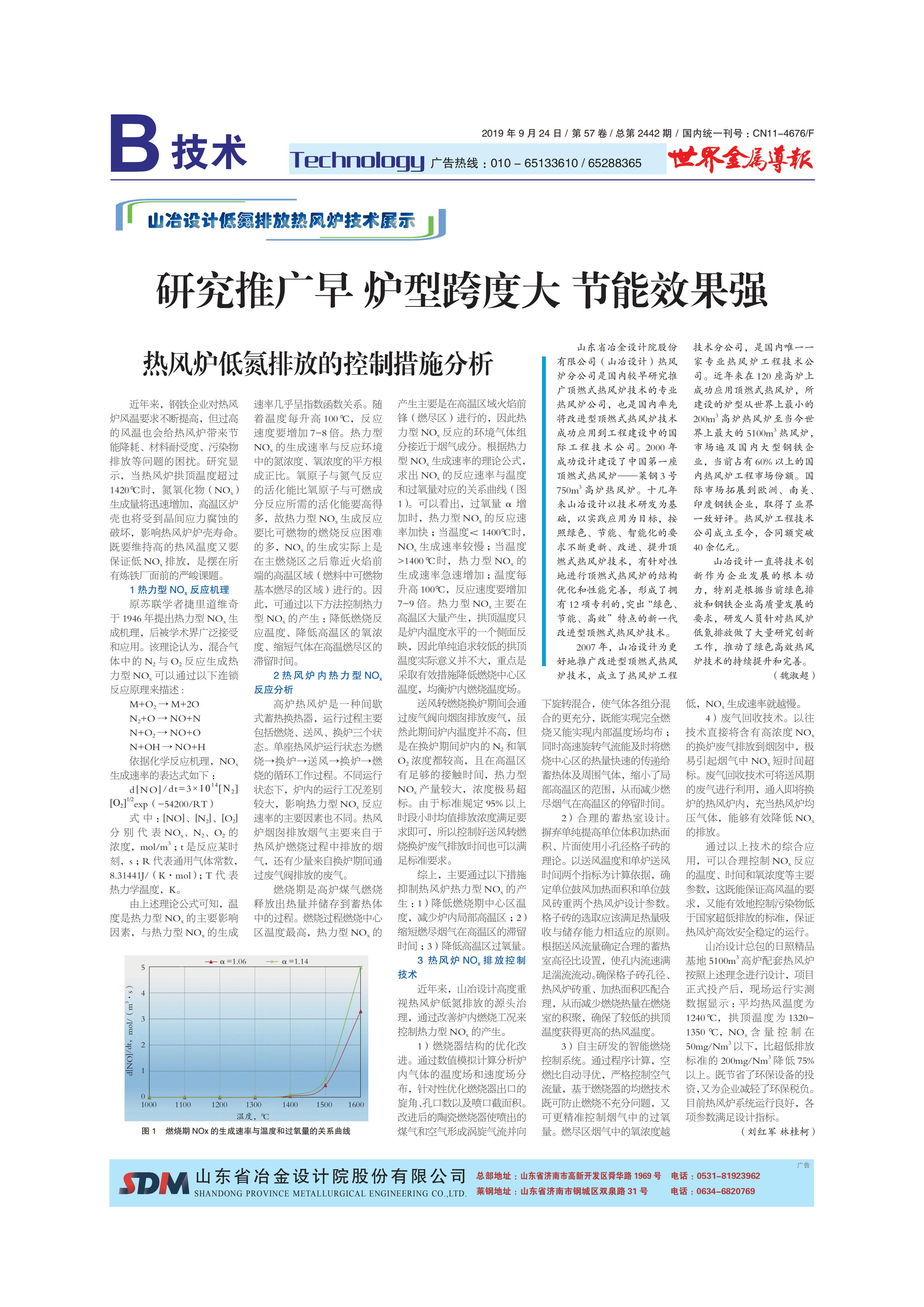研究推廣早 爐型跨度大 節(jié)能效果強(qiáng)——山冶設(shè)計(jì)低氮排放熱風(fēng)爐技術(shù)展示