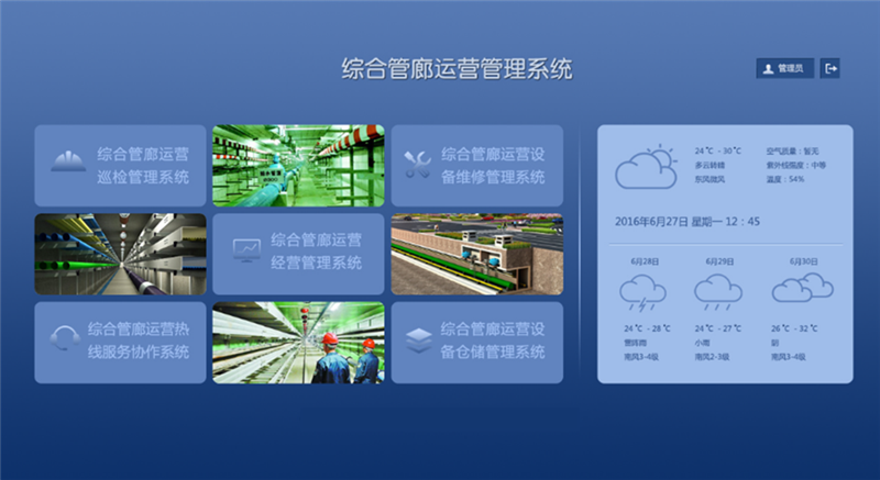 智慧管廊:以“知、控、警、決、管、營、享”為管理方針,以大數(shù)據(jù)、物聯(lián)網(wǎng)、云架構(gòu)、智能組態(tài)、綜合業(yè)務(wù)決策分析、人工智能等技術(shù)為支撐,結(jié)合城市地理信息系統(tǒng)(GIS)和建筑信息模型(BIM),通過整合各數(shù)據(jù)分析,構(gòu)建指揮統(tǒng)一、功能齊全、反應(yīng)靈敏、運轉(zhuǎn)高效的管廊運行綜合管理平臺,包括1個中心、1個平臺、7個應(yīng)用系統(tǒng)、N個終端,對綜合管廊內(nèi)環(huán)境、設(shè)備及運行進行實時監(jiān)控、運營管理和安全預警,提高決策指揮效率,切實提高處置突發(fā)安全事件的能力,以保障系統(tǒng)安全、高效運行。